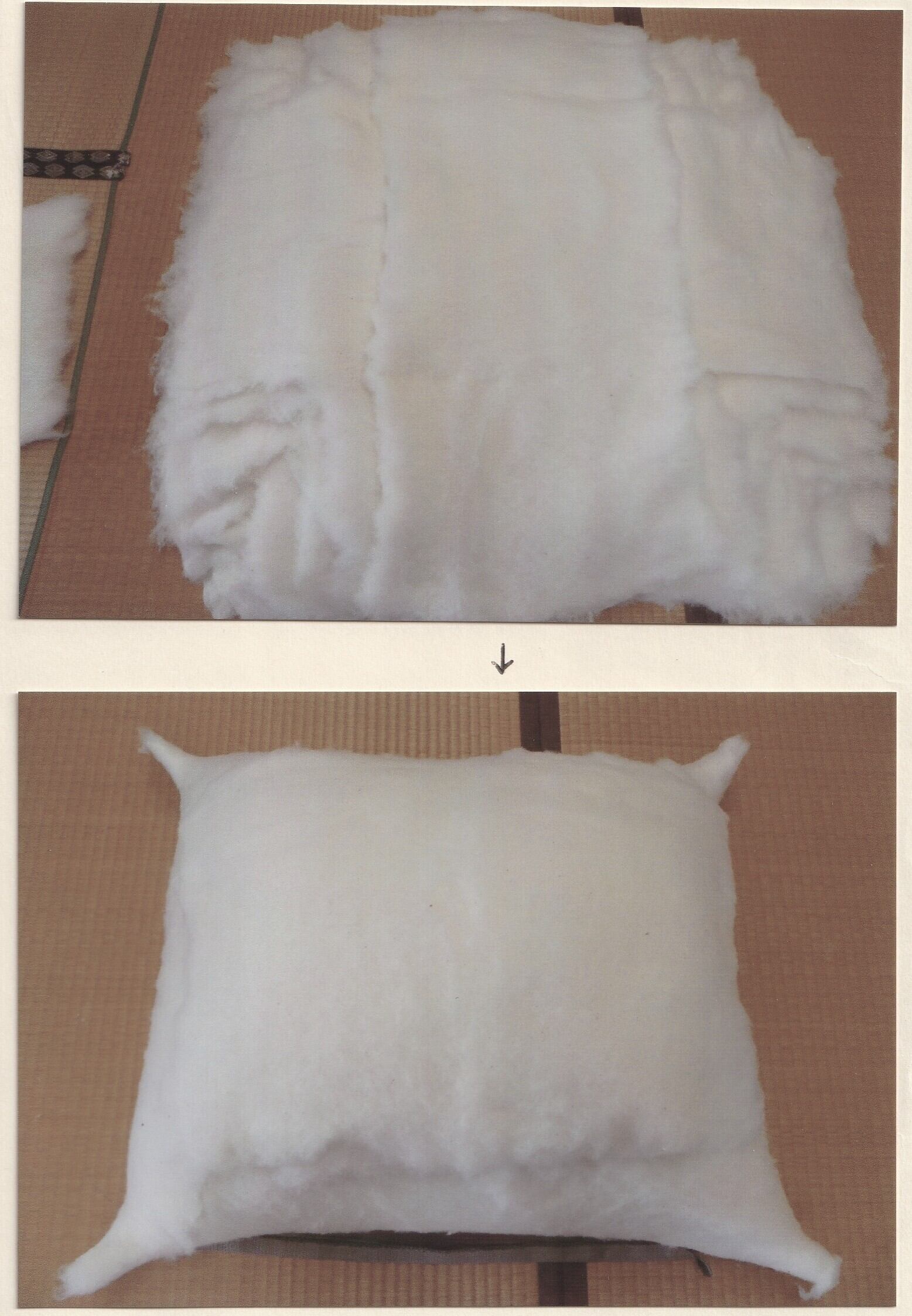 中わたには、綿(コットン)90%にポリエステル10%を配合した特製のわたを使用しています。